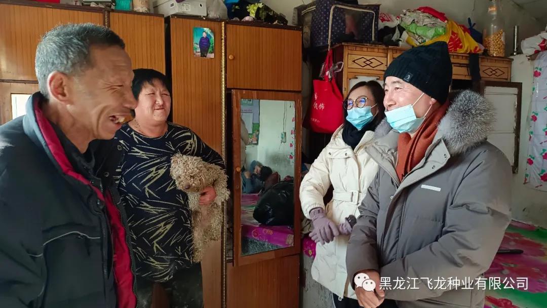2022年1月25日,飛龍種業(yè)林志達(dá)總經(jīng)理以及員工逐一深入到福利鎮(zhèn)、集賢鎮(zhèn)、升昌鎮(zhèn)、永安鄉(xiāng)、興安鄉(xiāng)、腰屯鄉(xiāng)馬清祥、王喜軍、呂海濱等11戶群眾家中,把年貨送到貧困群眾手中,并耐心地詢問(wèn)他們春節(jié)年貨置辦得怎樣、生活上還有哪些困難等,同時(shí)提前祝福他們節(jié)日快樂(lè),讓他們從心里感受到全社會(huì)對(duì)困難群眾的關(guān)愛(ài)之情。除了米面油、水果、醬油醋、深海刀魚和瓜子花生糖果等年貨以外,還根據(jù)不同需求送去了衣服、鞋子、被褥等。
