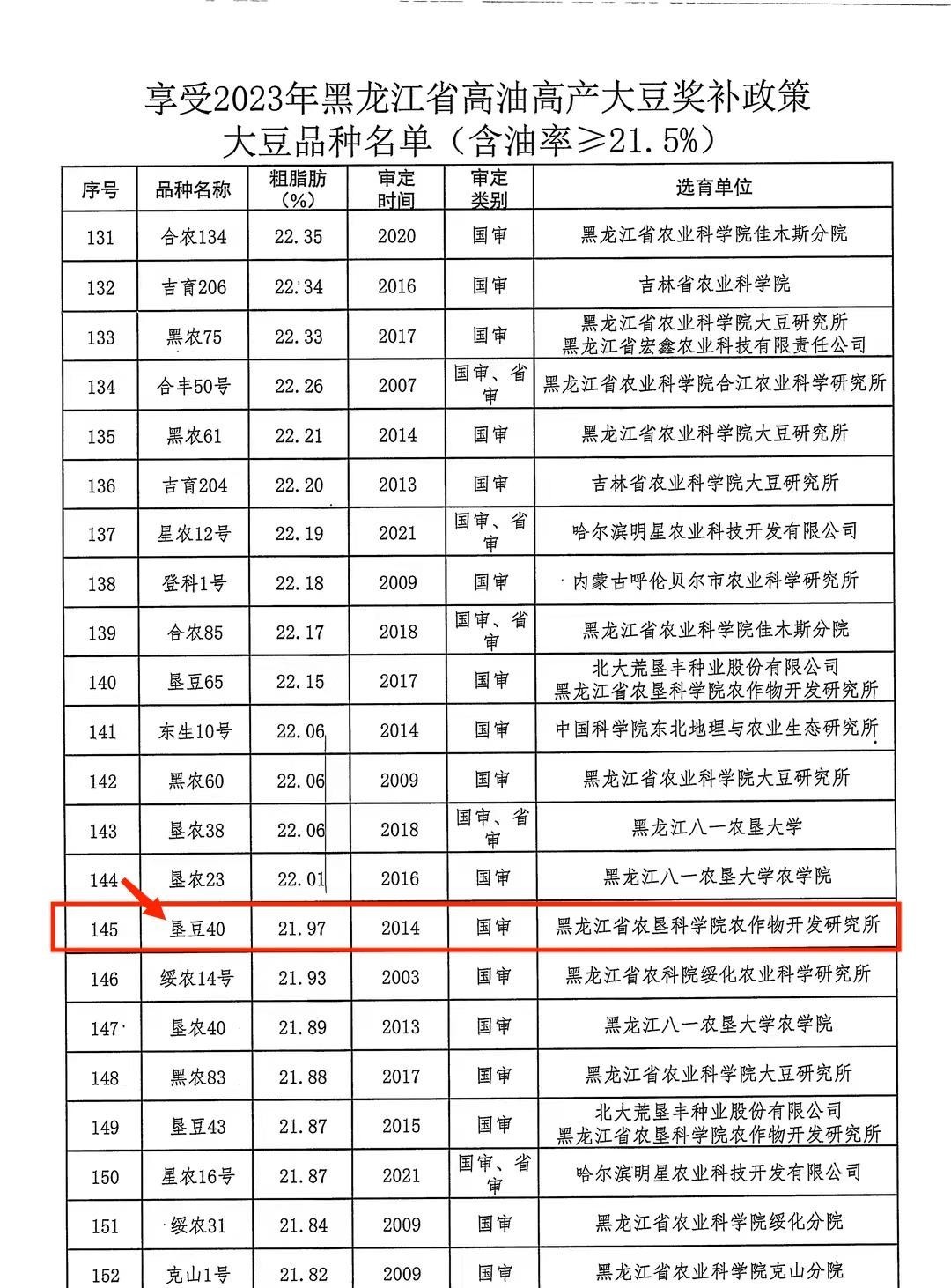 附件:1.享受2023年黑龍江省高油高產(chǎn)大豆獎補政策大豆品種名單(含油率≥21.5%)